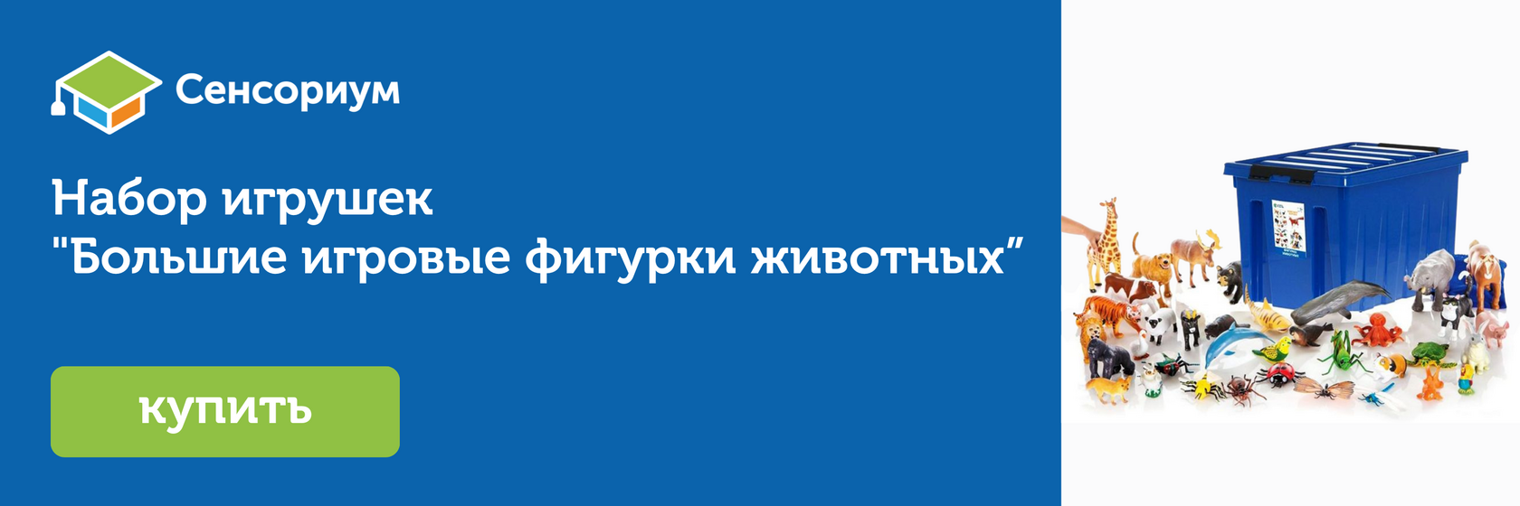 Для таких занятий нужны реалистичные игрушки, которые точно передают основные видовые признаки. Мы активно используем в этой работе набор больших игровых фигурок животных «Сенсориум» MS0010. Дети не путают тигра со львом, а лося с оленем, что принципиально важно для формирования правильных первоначальных представлений о биологическом разнообразии.