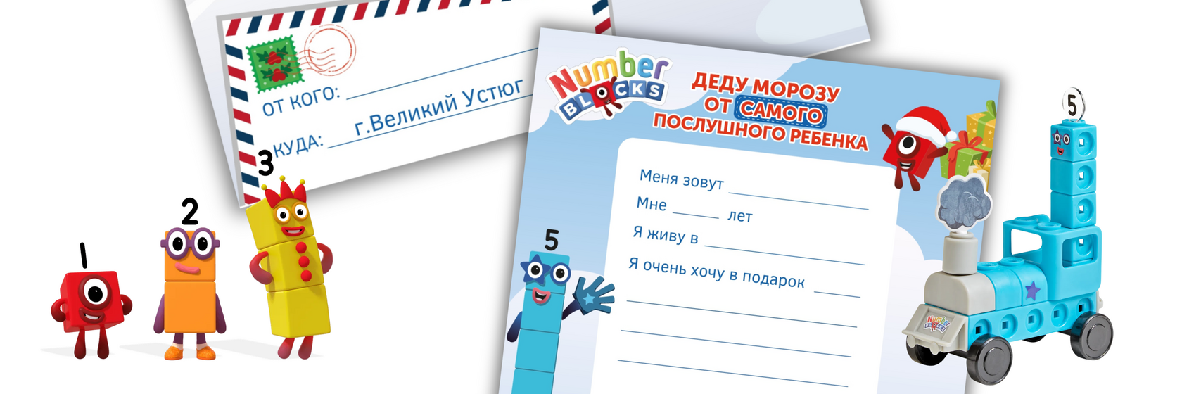 Герои мультфильма Numberblocks (Намберблокс) приготовили для вас особенный подарок — шаблон письма для Дедушки Мороза! В нем есть место для самого заветного желания и, конечно, веселые герои из мира NumberBlocks, которые помогут его передать.