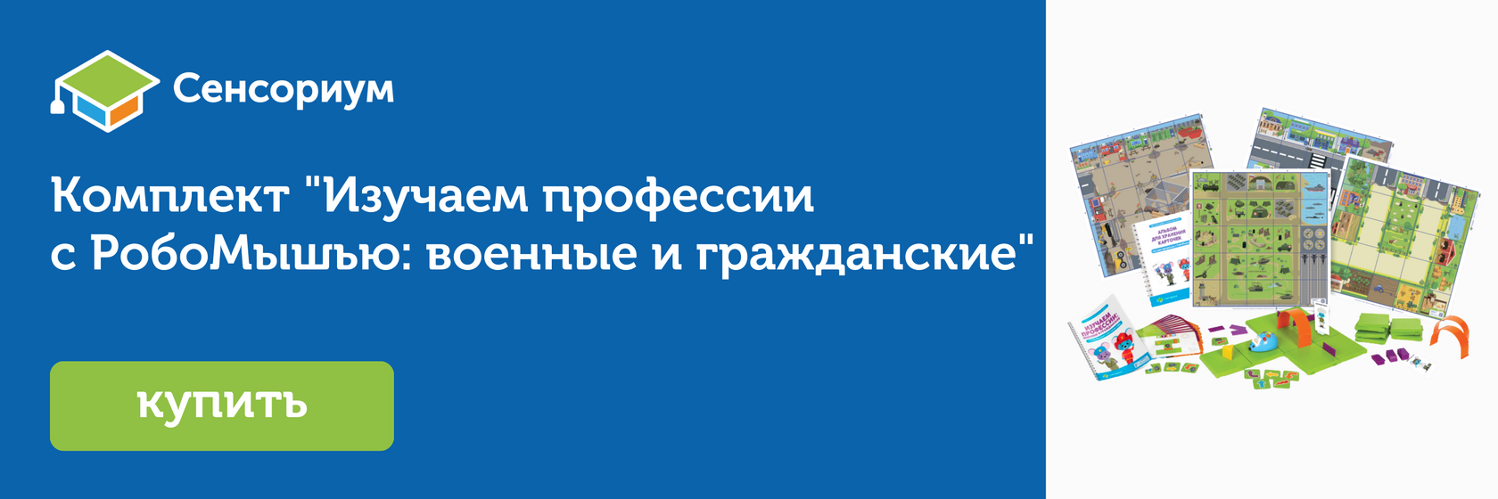 Все перечисленные сценарии реализуются на базе одного комплекта — «Изучаем профессии с РобоМышью: военные и гражданские» (MS0076). В нём уже есть: