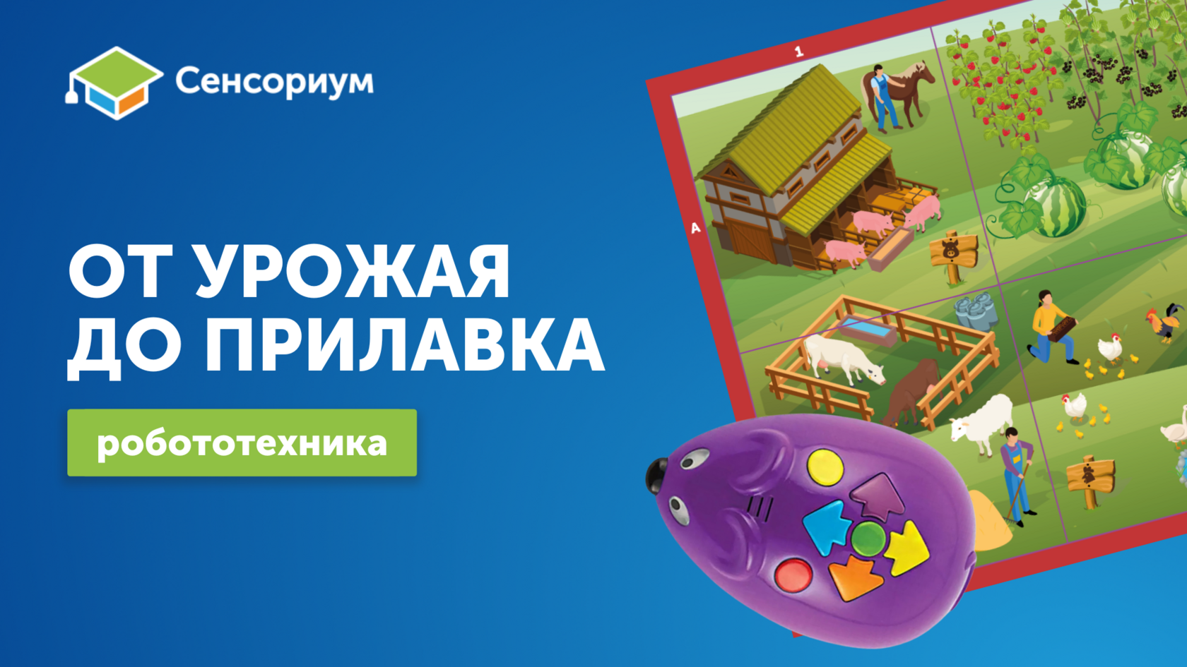 В этом отлично помогает комплект "Наше сельское хозяйство с РобоМышью" от "Сенсориум Групп". С помощью программируемой РобоМыши и тщательно проработанных тематических ковриков дети не просто слушают, а сами становятся активными участниками процесса: фермерами, логистами, технологами и продавцами.
